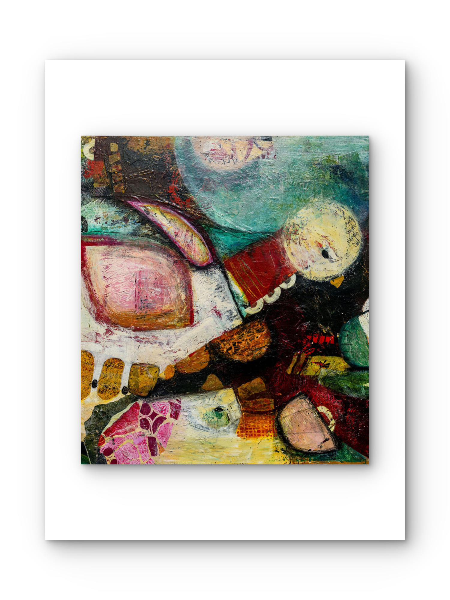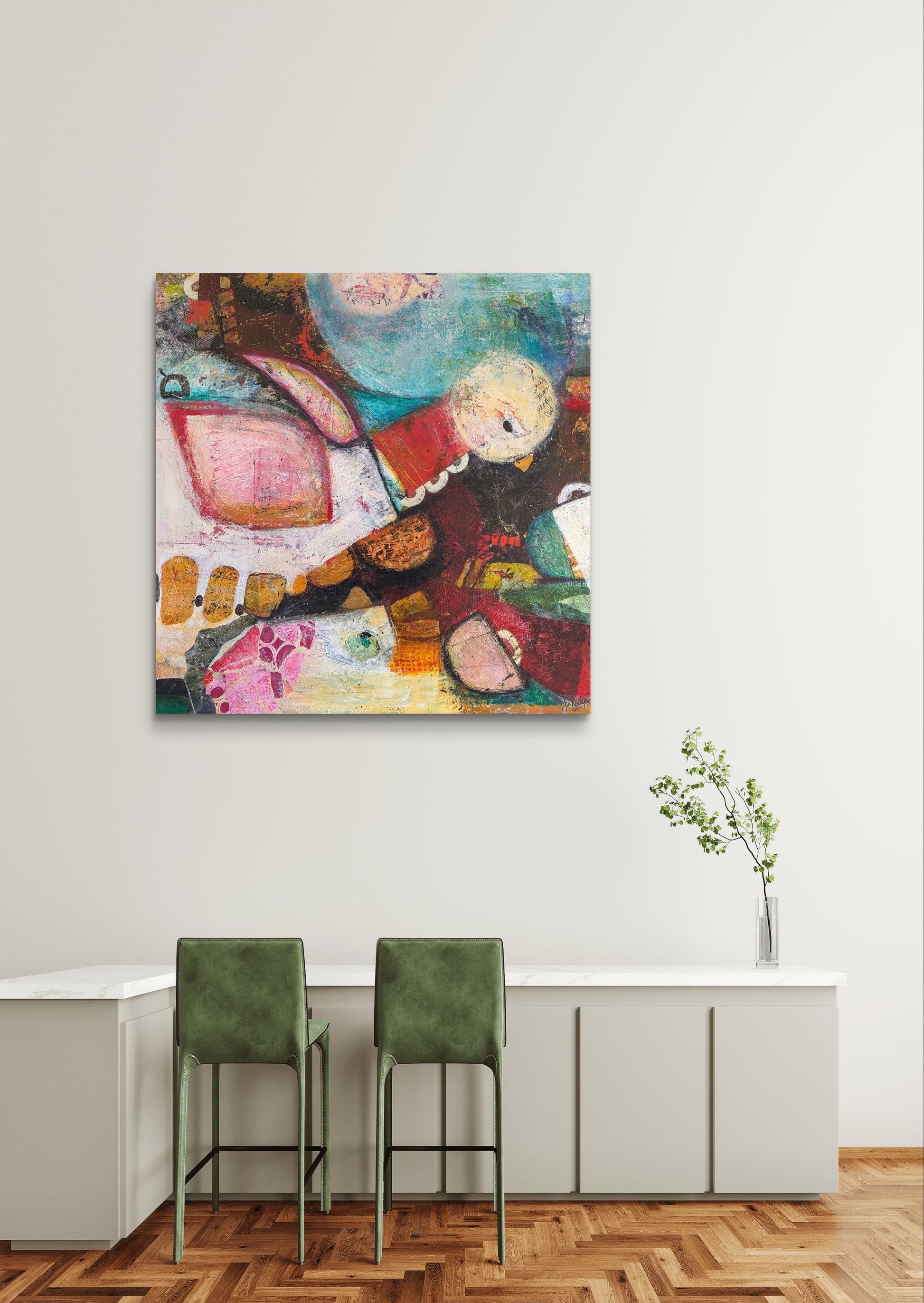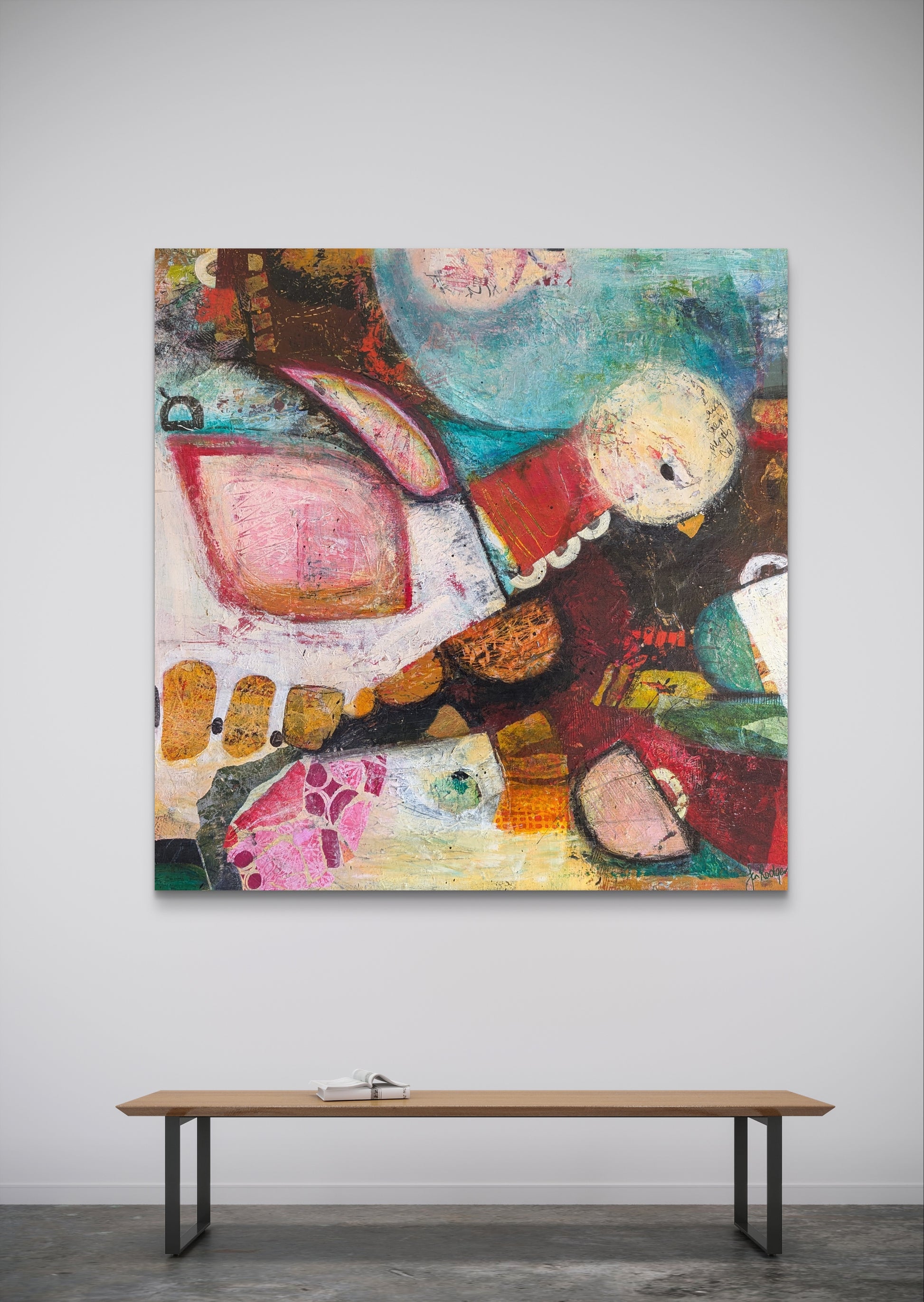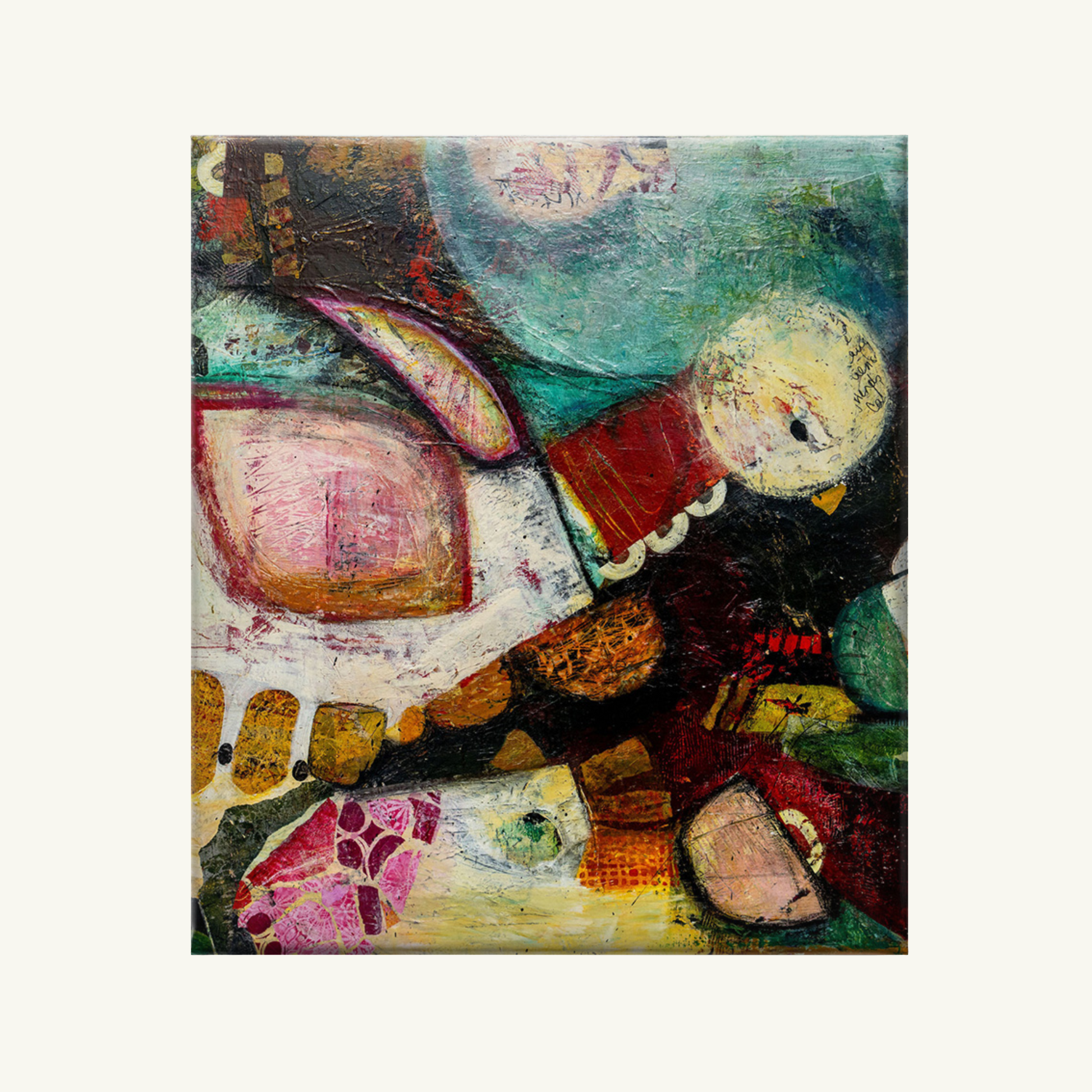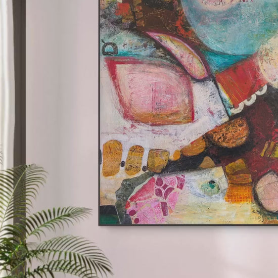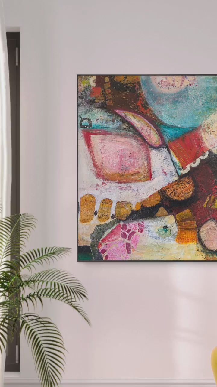 Mixed media acrylic on stretched canvas frame.
