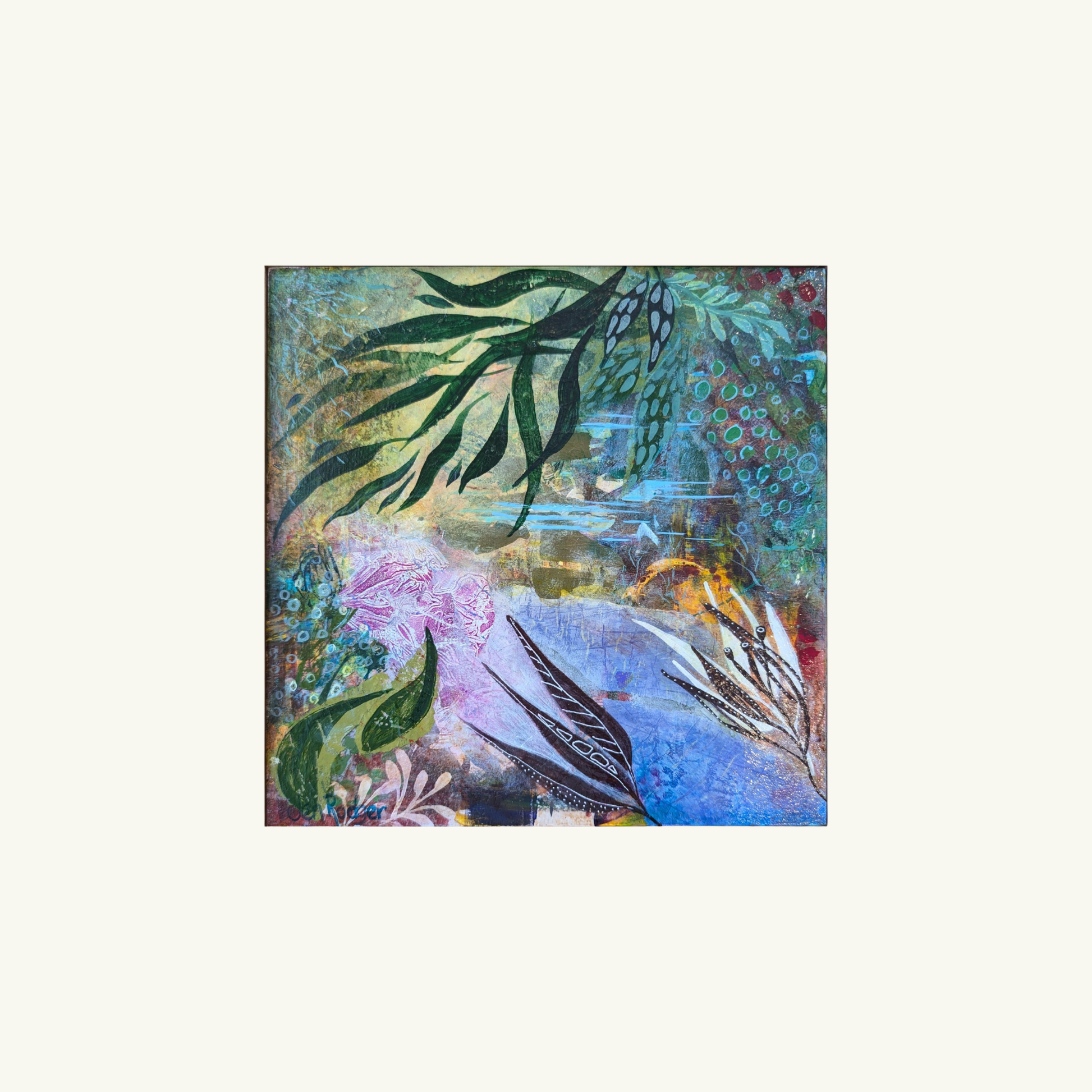 This quiet gentle painting comes already framed and ready to hang, complete with a hang-straight guild and wall protectors. It is painted in acrylic on Birch Board with a thin floating frame made from beautiful Tasmanian Oak. Note, the measurements include the frame.