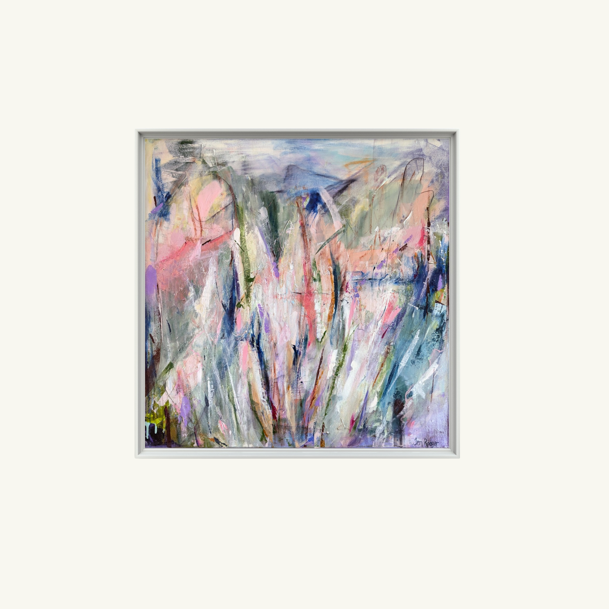 Bring the spirit of wild, beautiful freedom into your home with "Untamed." This large, expressive painting is a vibrant celebration of raw beauty and the exhilarating feeling of letting go. With its stunning, soft palette of gentle greens, whispers of pink, and lively blues, this piece captures the serene chaos of a natural, uninhibited landscape. The energetic brushstrokes and dynamic layers create a sense of movement and life, making it a powerful focal point for any room. "Untamed" is a reminder to embrace our true, wild selves and find the extraordinary beauty that flourishes when we break free from expectations.
